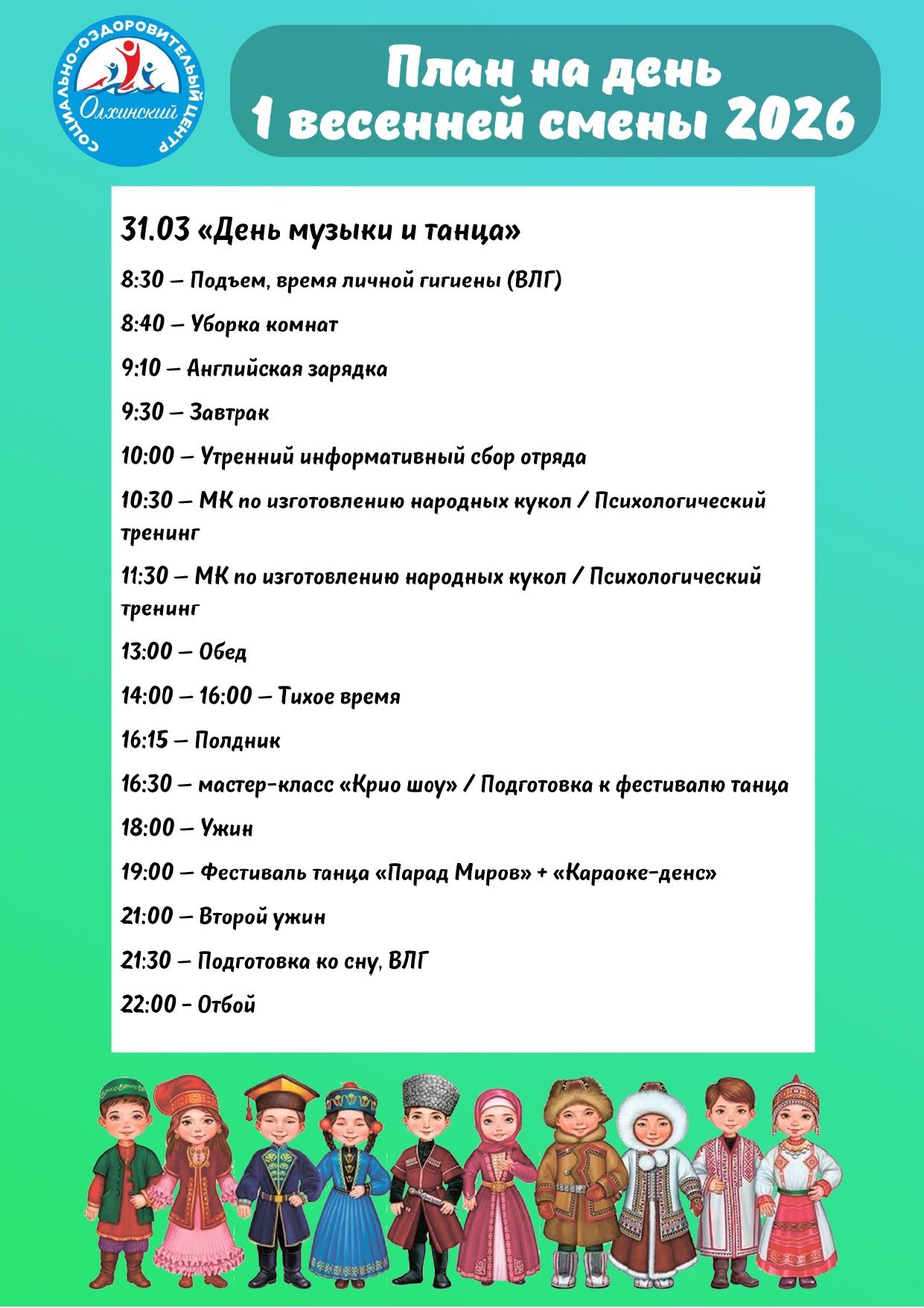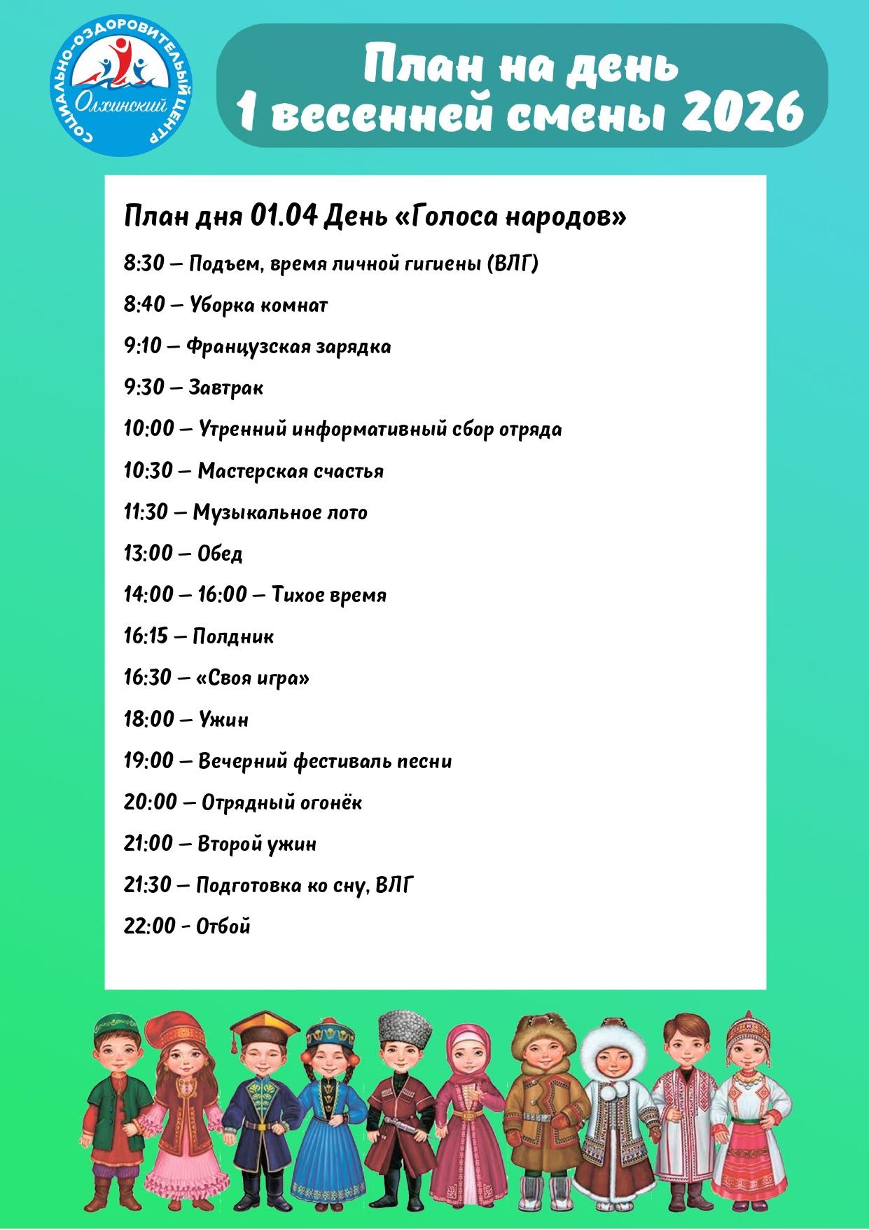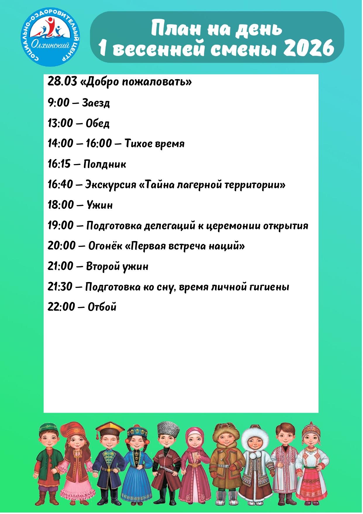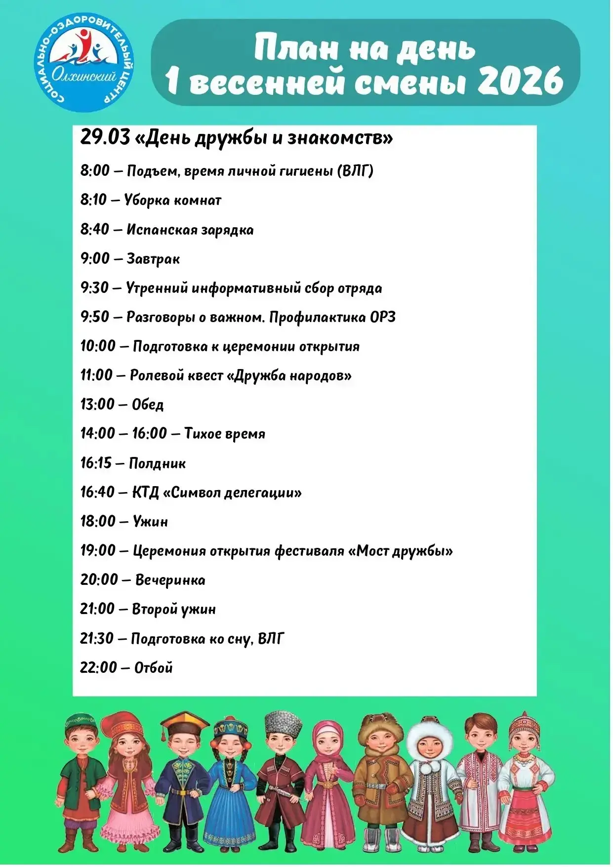 Церемония открытия «Мост Дружбы»: Каждый отряд представит культуру одной из республик России или стран-соседей, построив символический мост.