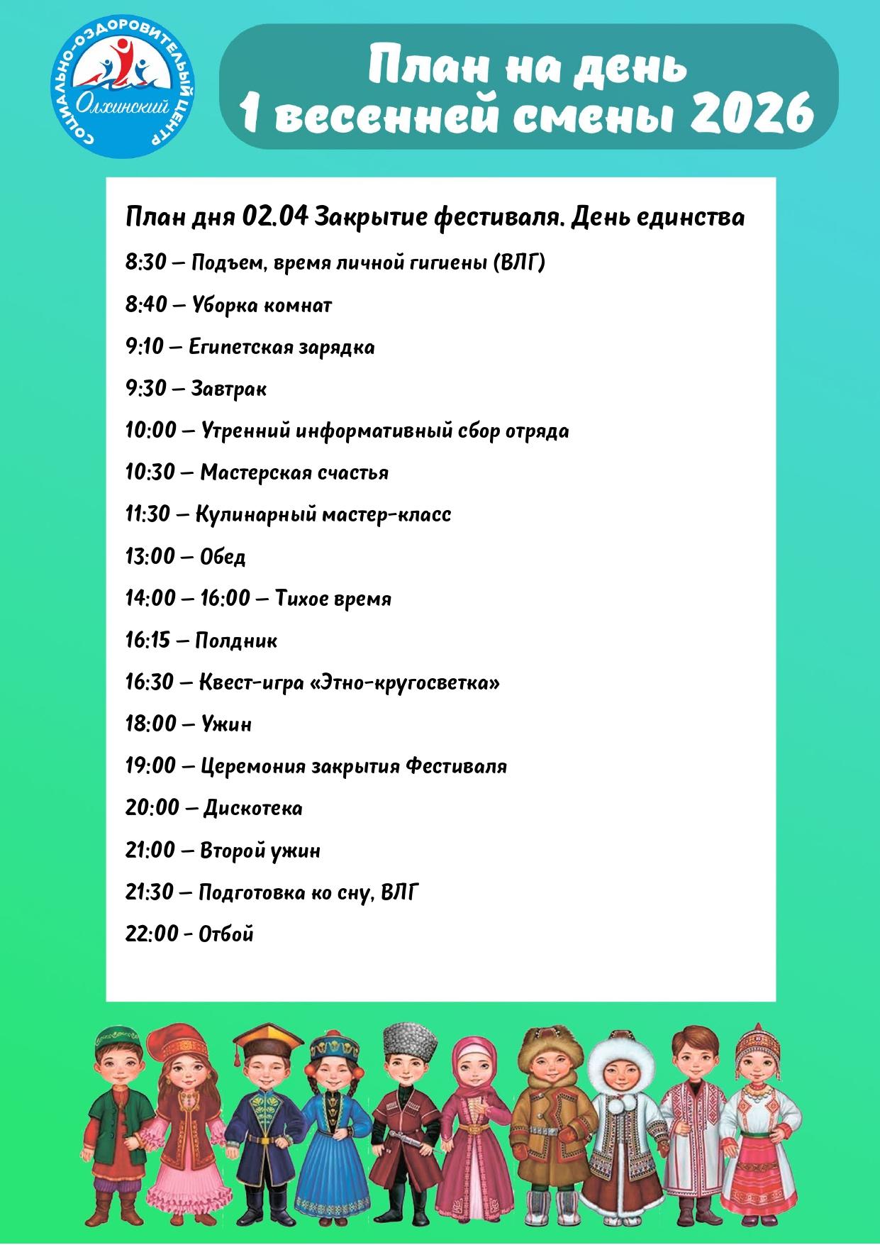 Торжественное закрытие «Фестиваль семей народов мира»: Итоговый праздник, где мы покажем, что, несмотря на все различия, мы — одна большая семья, живущая под одним весенним солнцем.