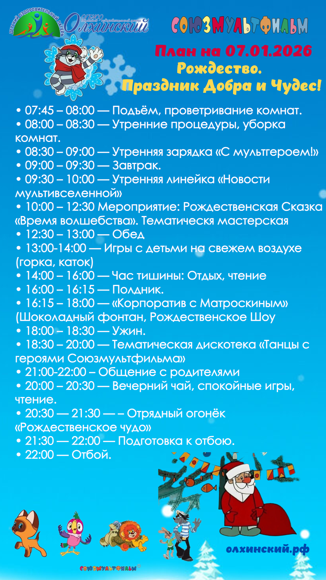 На время смены лагерь превратится в огромную «киностудию», где каждый отряд — это творческая мастерская, отвечающая за создание своего мультфильма. Каждый день — это новый этап производства (от идеи до премьеры) и одновременно погружение в эстетику и ценности классических советских мультфильмов. Мы сделаем акцент на творчестве, дружбе, взаимопомощи и «ручной» работе (анимация, реквизит), что особенно созвучно зимнему, камерному времени.