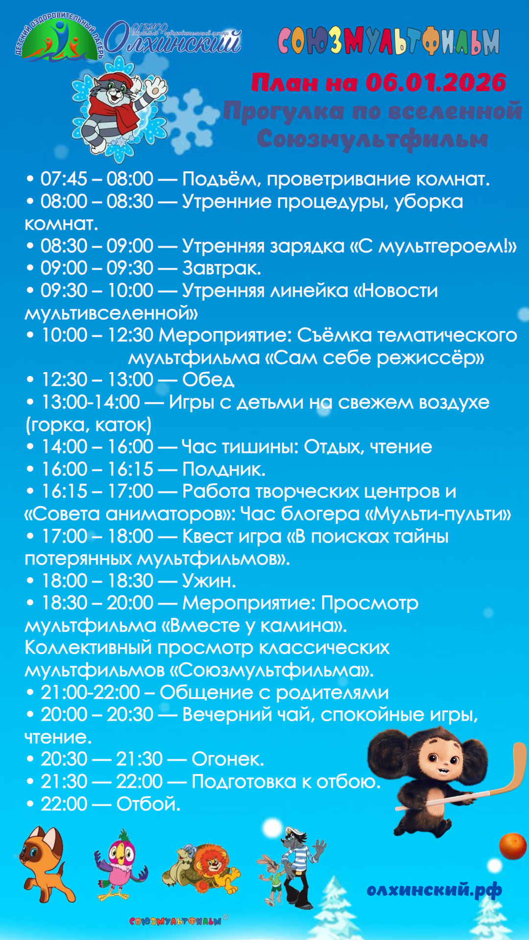 «Союзмультфильм в лагере» — это погружение в мир добрых, мудрых и вечных историй, которые объединяют поколения. Вот разработанная концепция зимней лагерной смены.